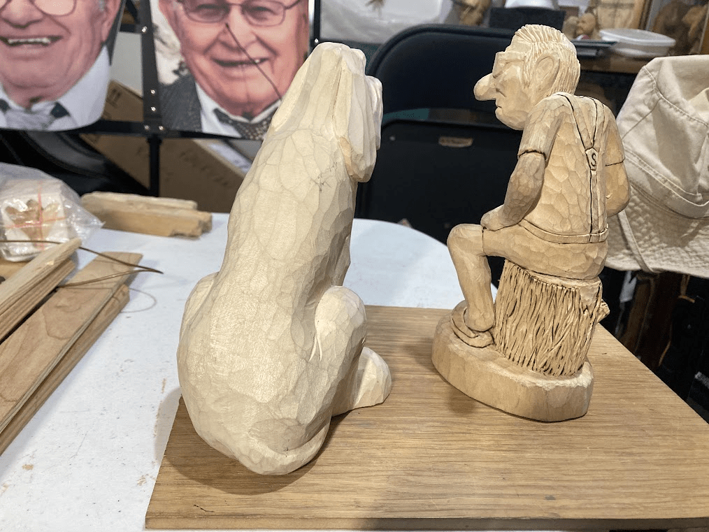 This pair of carvings is from the Rocky Mountain Carver’s Roundup I attended in Midway, UT earlier this year (2023). I need to put the finishing touches on ‘Stumped’ and ‘Floppy’ to get them ready for the acrylic paint I’ll be laying down later. Roughouts are from CCA Member, Dale Green’s ‘Boomer’ and Dwayne Gosnell’s ‘Duke’. I learned a lot from carving alongside these Magnificent Legends, Dale and Dwayne!