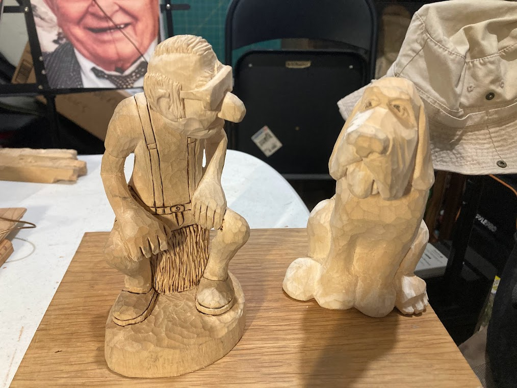 This pair of carvings is from the Rocky Mountain Carver’s Roundup I attended in Midway, UT earlier this year (2023). I need to put the finishing touches on ‘Stumped’ and ‘Floppy’ to get them ready for the acrylic paint I’ll be laying down later. Roughouts are from CCA Member, Dale Green’s ‘Boomer’ and Dwayne Gosnell’s ‘Duke’. I learned a lot from carving alongside these Magnificent Legends, Dale and Dwayne!