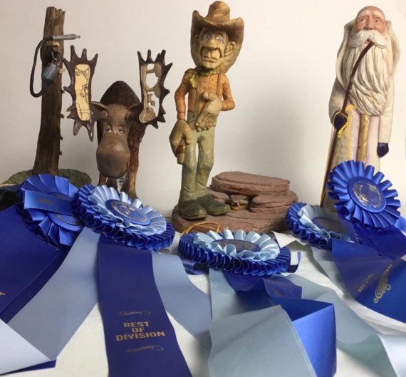 They’re all lined up! These are the three Best of Division awards I’ve received while carving in Open Level (L – 2019 Moose; M – 2010 Lightning & Snake; R – 2008, Father Winter). Now it’s on to Expert Level Carving! I hope I’ve shown some improvement over that 11 year period of time.